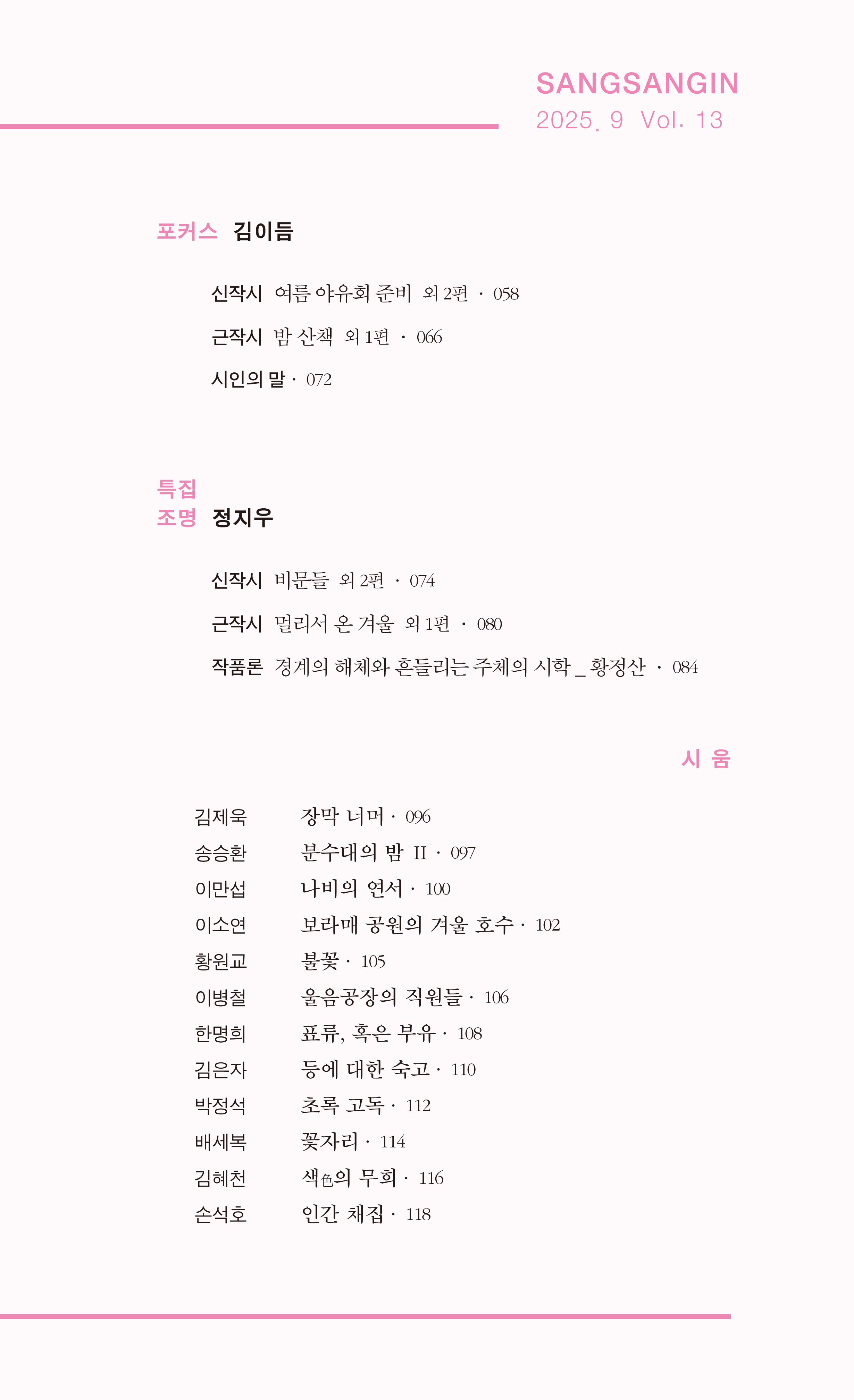 상상인 2025년 가을호 표지와 목차 < 잡지 목차 소개 < 기사본문 - 미디어 시in